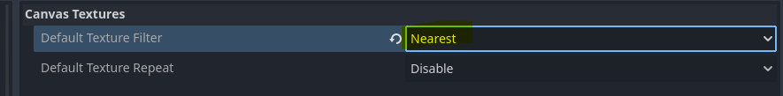 Choose Textures under Rendering (left nav of project settings). Set Default Texture Filter to Nearest (ensures pixel art remains crisp).